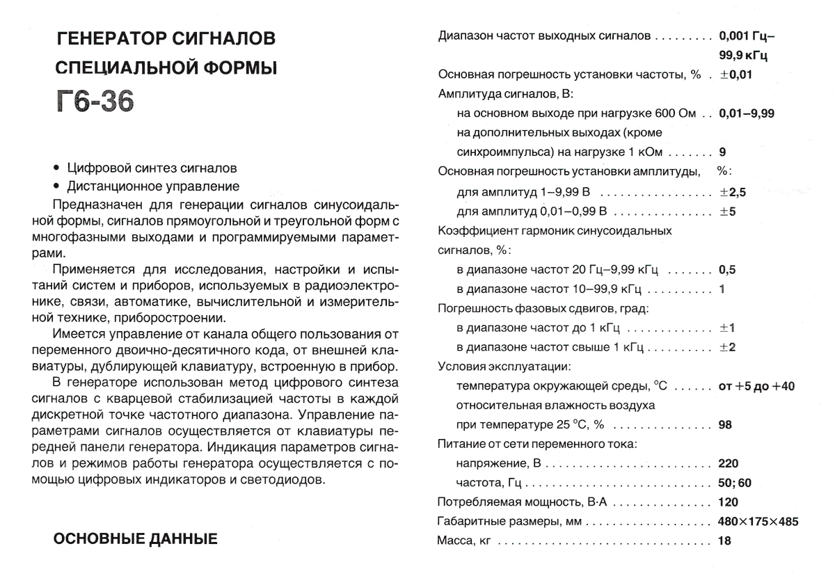 Генератор сигналов специальной формы "Г6-36" выпускался с 1990 года. Для генерирования сигналов в диапазонах инфранизких, НЧ и ВЧ.