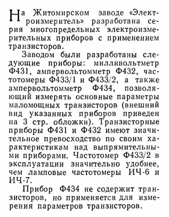 Информация о приборе из журнала "Радио" № 10 за 1963 год.