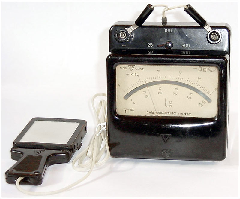Люксометр "Ю-16" с фотоэлементом выпускался с 1960 года. Люксометр "Ю-16" предназначен для измерения и контроля степени освещённости объектов.