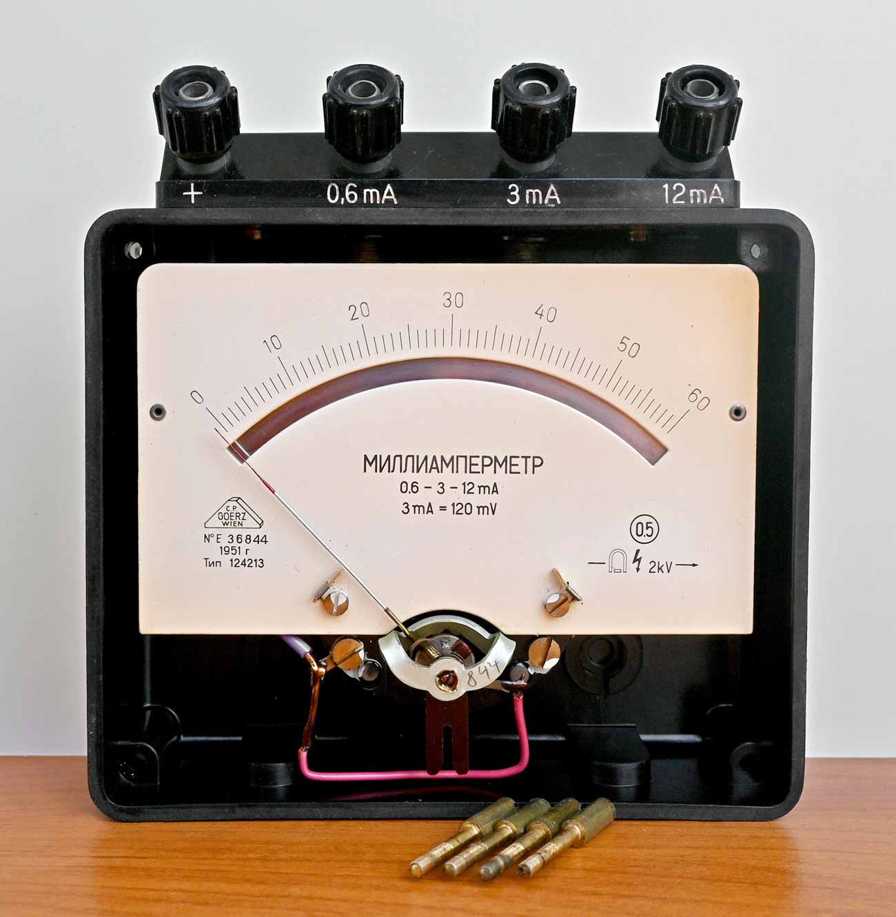 корпусе с зеркальной шкалой. Пределы измерений: 0.6 / 3 / 12 mА. Класс