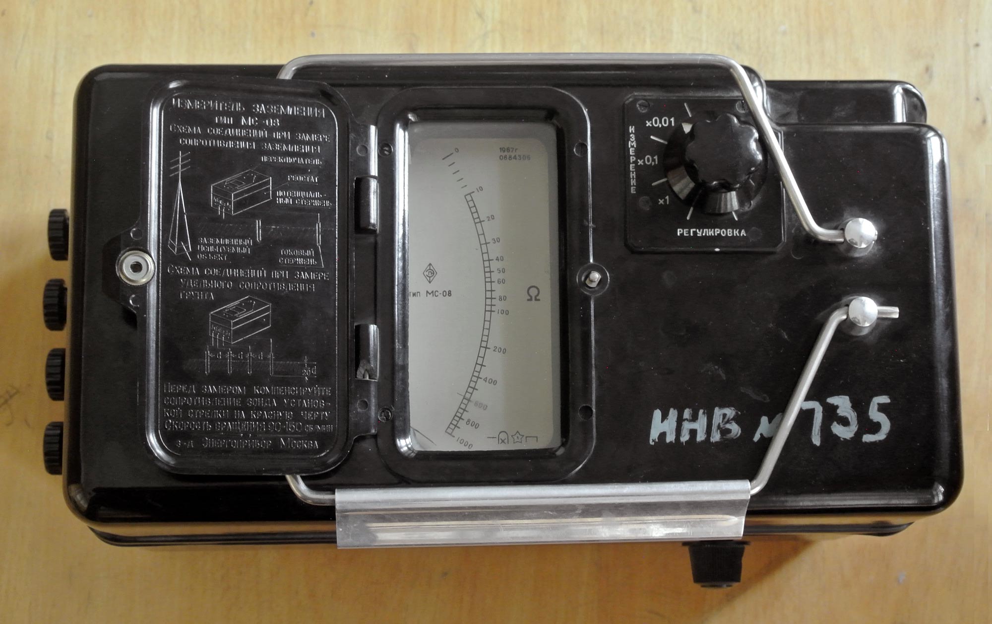 прибором измеритель заземления "МС-08" на пределе шкалы 1000 Ом. В приборе