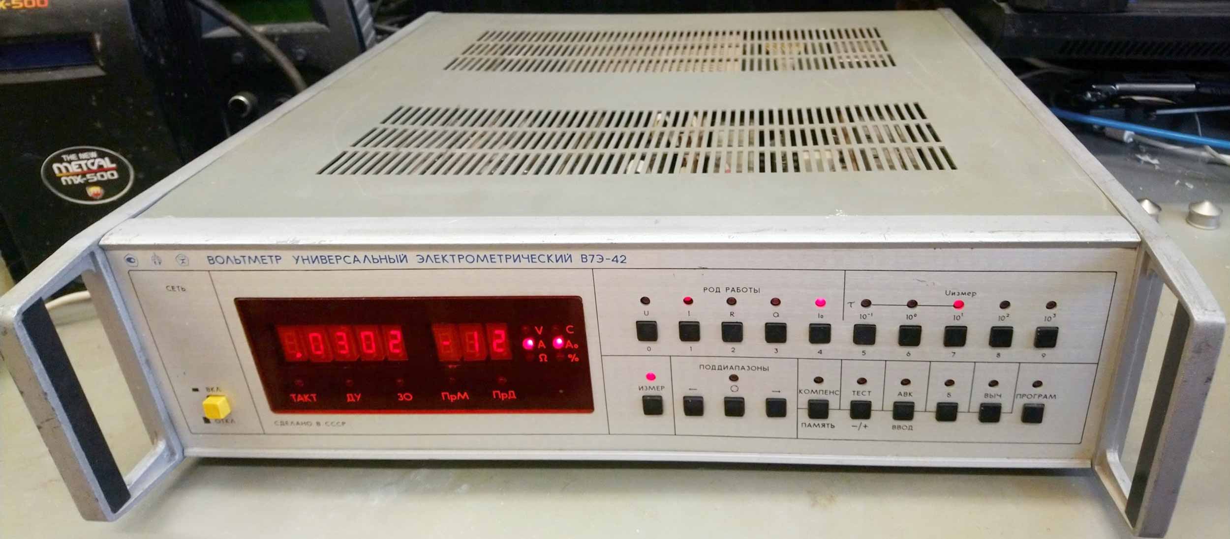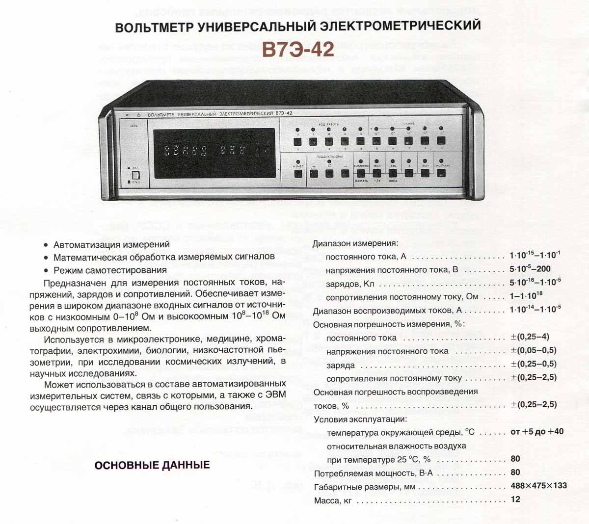 Вольтметр "В7Э-42" выпускался с 1997 года Минским ПО "БелВАР". Универсальный электрометрический прибор, служащий для измерения постоянных токов, напряжений, зарядов и сопротивлений.