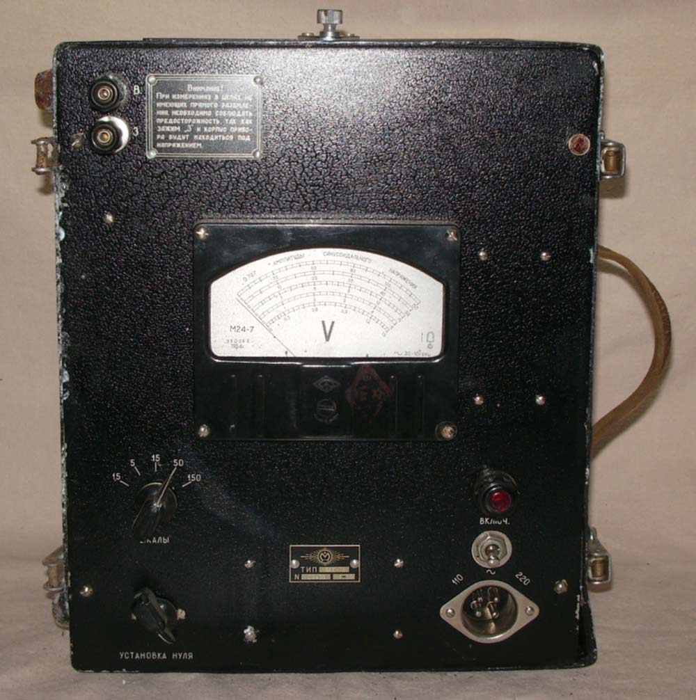 пяти шкалах: 0-1.5; 0-5; 0-15; 0-50 и 0-150 В. Погрешность прибора 3% от