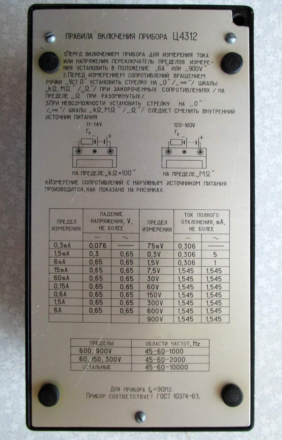Прибор типа "Ц-4312" служит для измерения силы тока, напряжения постоянного