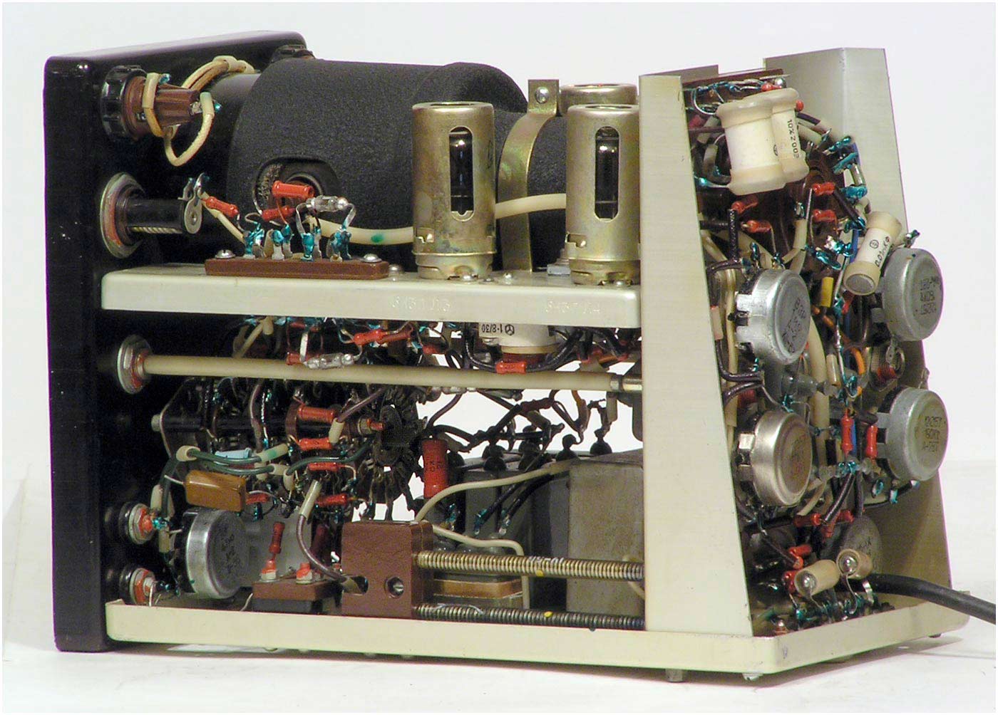 электронно-лучевая трубка 7ЛО-55. Габариты осциллографа 140х210х275 мм.