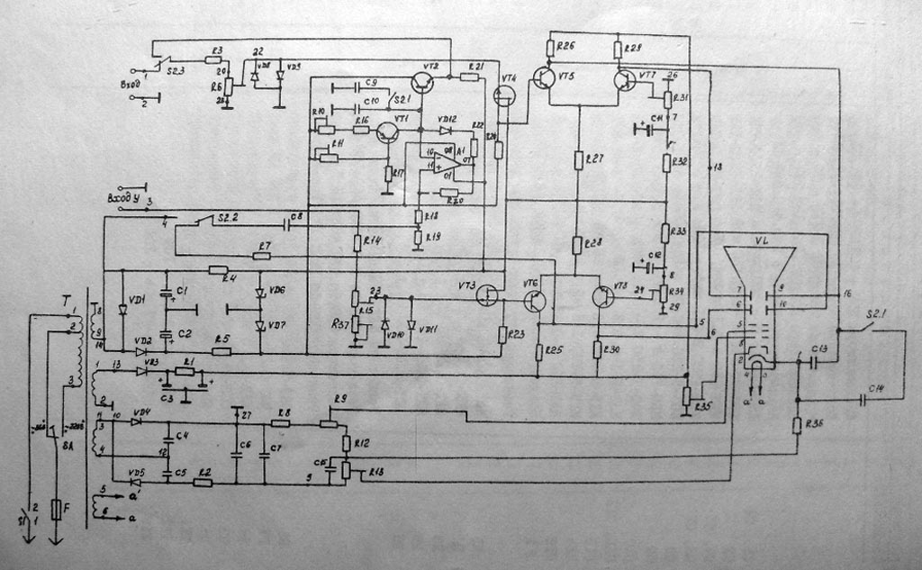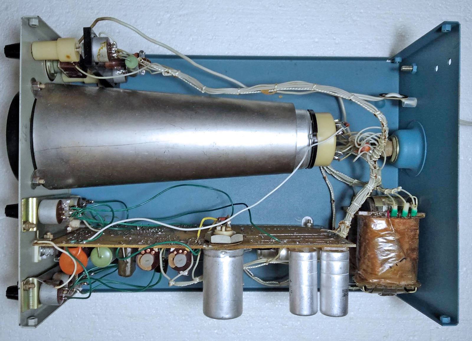 электронного луча от 1 Гц до 10 кГц. Питание от сети 220 В. Мощность, потребляемая