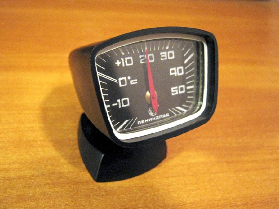 Автомобильный термометр "Ленинград" выпускался с 1985 года Ленинградской компанией "ТСА" Автосервис. На липучке. Для автомобилей ВАЗ и Москвич.