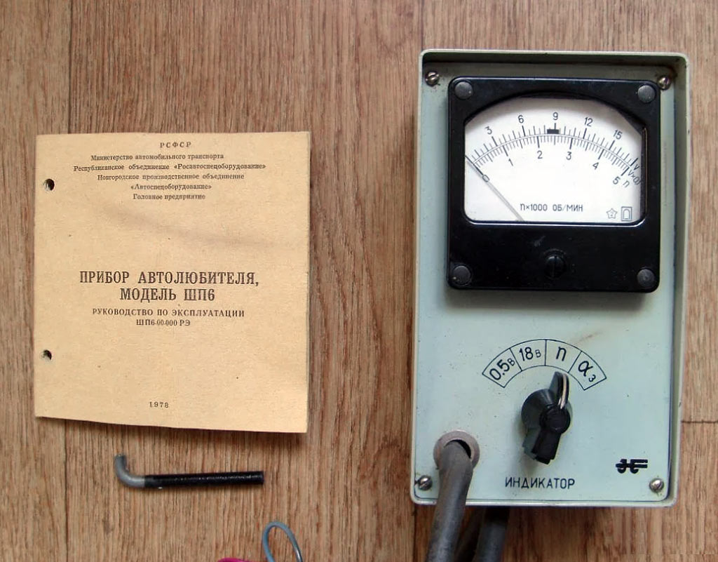 Прибор автолюбителя "ШП-6" выпускался с 1976 года в Новгороде. Прибор предназначен для проверки электрооборудования автомобиля.
