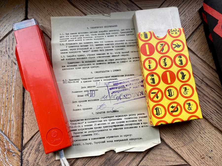 Репетитор "Стоп-тест" выпускался возможно с 1995 года Ровенским заводом 60-летия Октября и Тартуским заводом измерительной аппаратуры. Предназначен для контроля знаний ПДД.