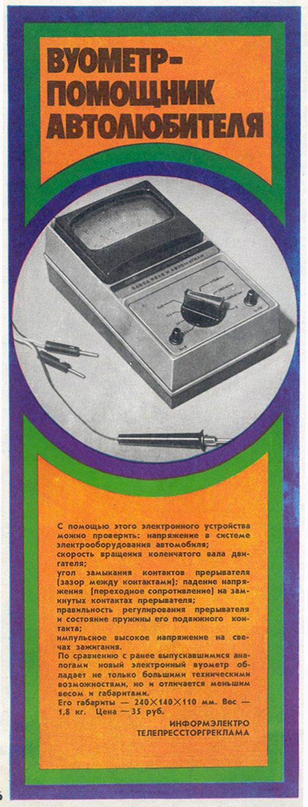 Помощник автолюбителя "Вуометр" (М265М95) выпускался предположительно с 1979 года возможно Киевским заводом реле и автоматики.