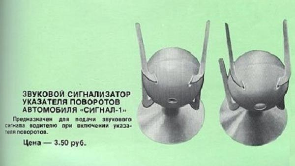 Звуковой сигнализатор указателя поворотов автомобиля "Сигнал-1" выпускался возможно с 1984 года Нальчикским заводом полупроводниковых приборов. (Сувенирный).