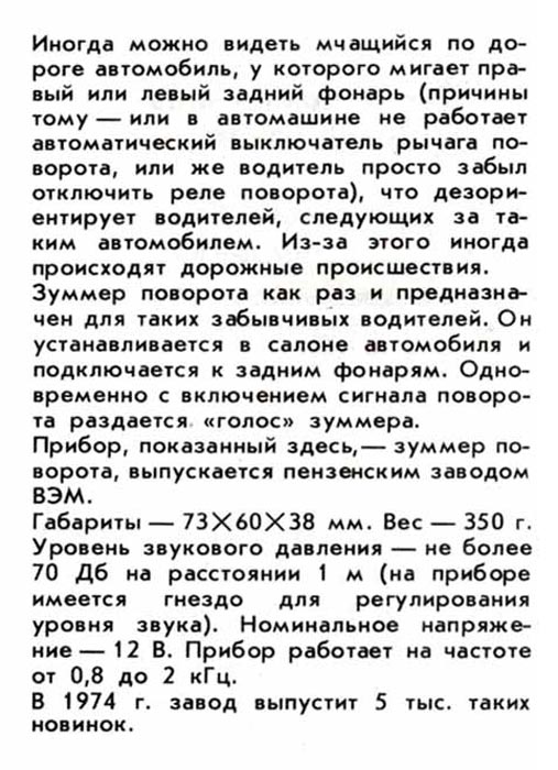 Сигнальное устройство для автомобиля "Зуммер поворота" выпускалось возможно с 1973 года Пензенским заводом "ПЭМ".