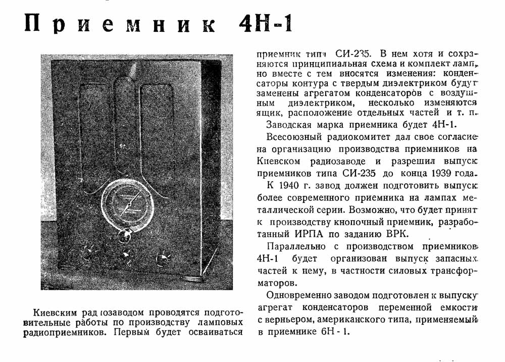 сетевой ламповый "4Н-1" с 1939 года подготовил к производству Киевский