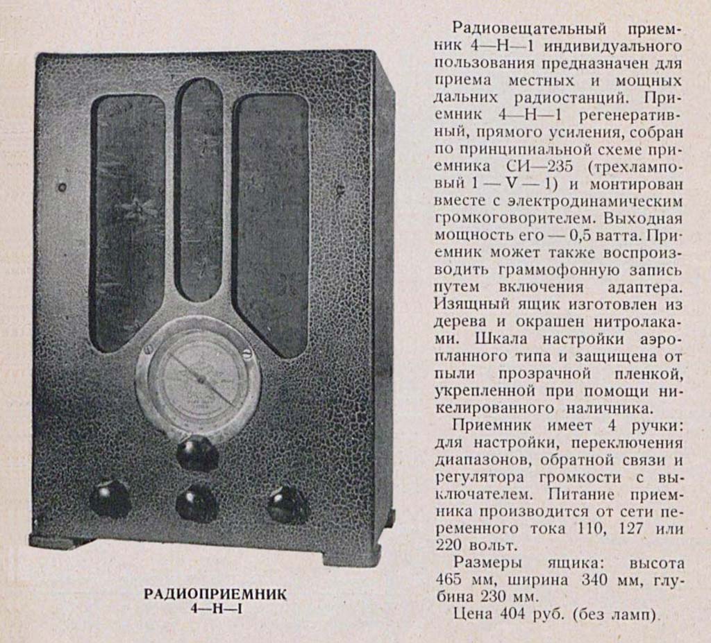 частей и другое. Заводская марка у приёмника ''4Н-1''. Всесоюзный радиокомитет