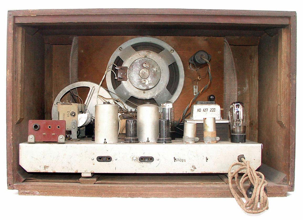 Футляр у приёмника деревянный, оклеен ореховой (берёзовой) фанерой, отполирован