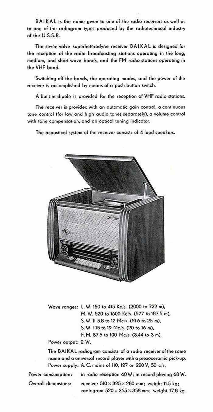 завод выпускал и радиолу ''Байкал''. Конструкция радиолы, кроме установленного