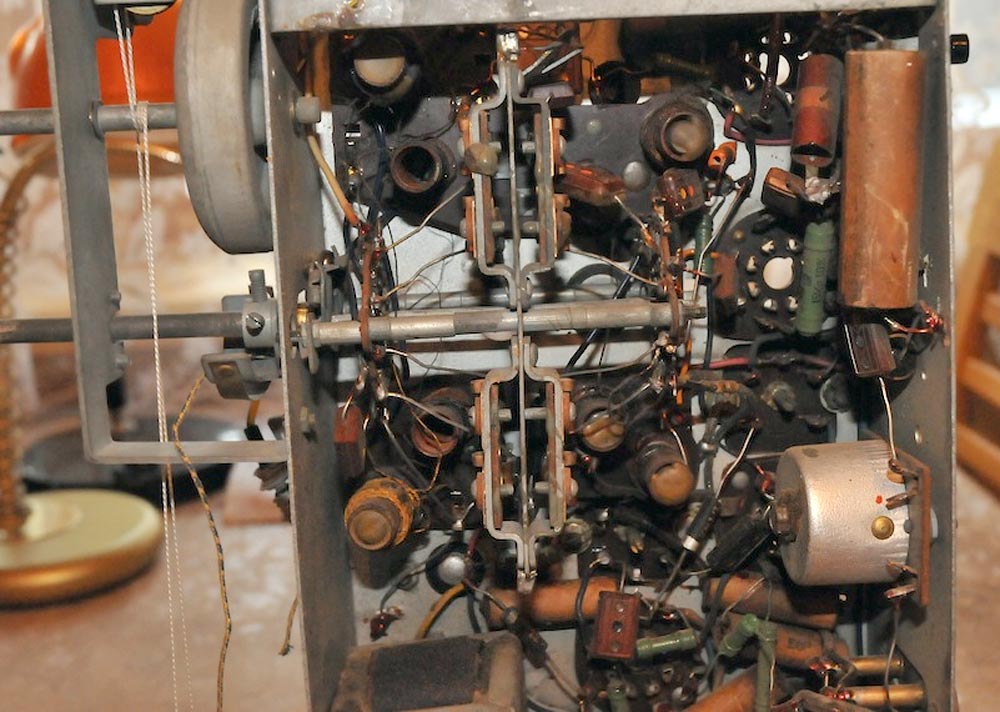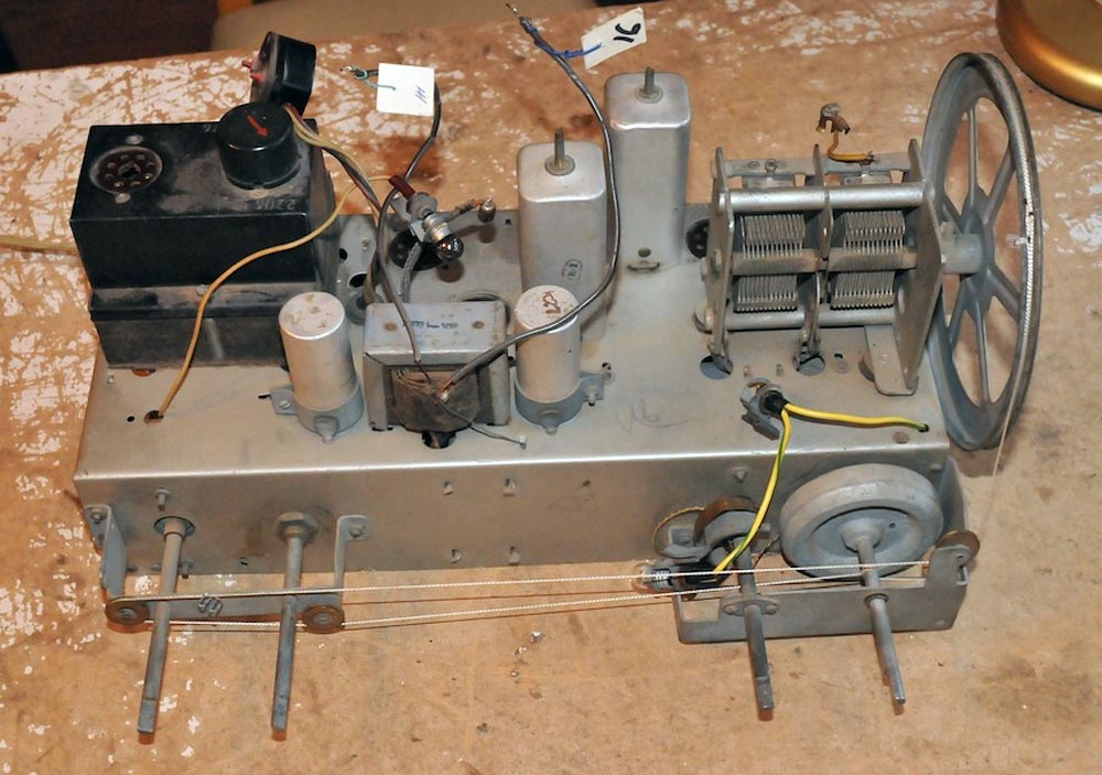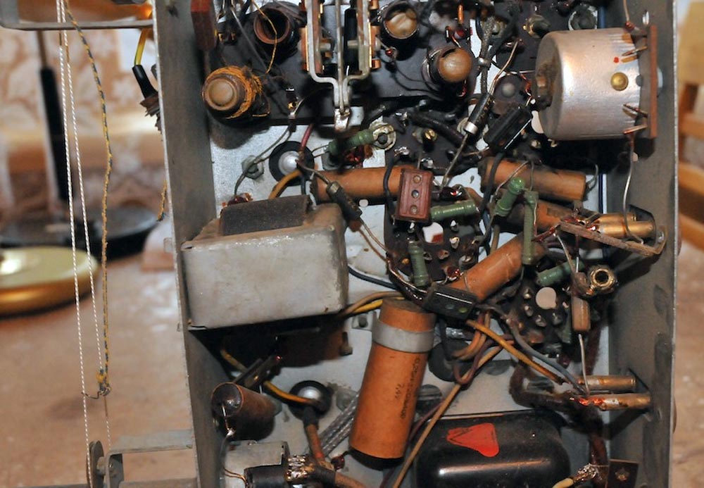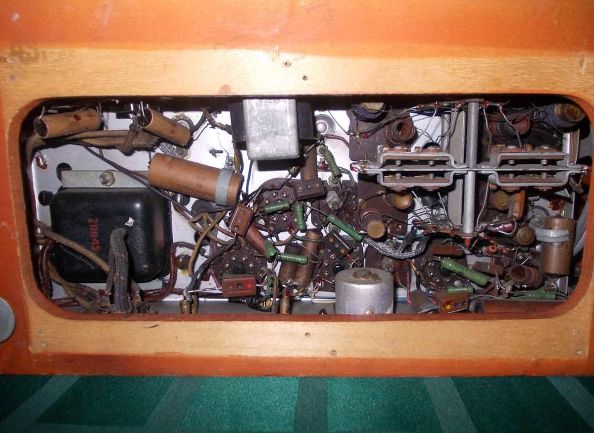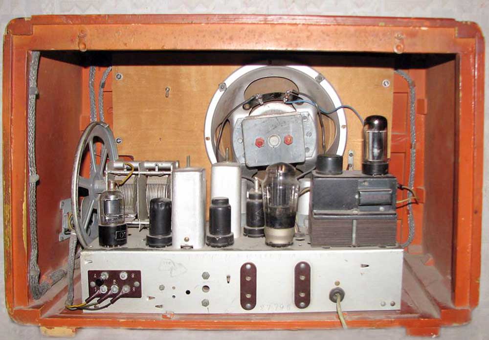 6Ж6С, 6А7, 6К3, 6Г7, 6П3С, 6Е5С, 5Ц4С. В футляре укреплены перпендикулярные