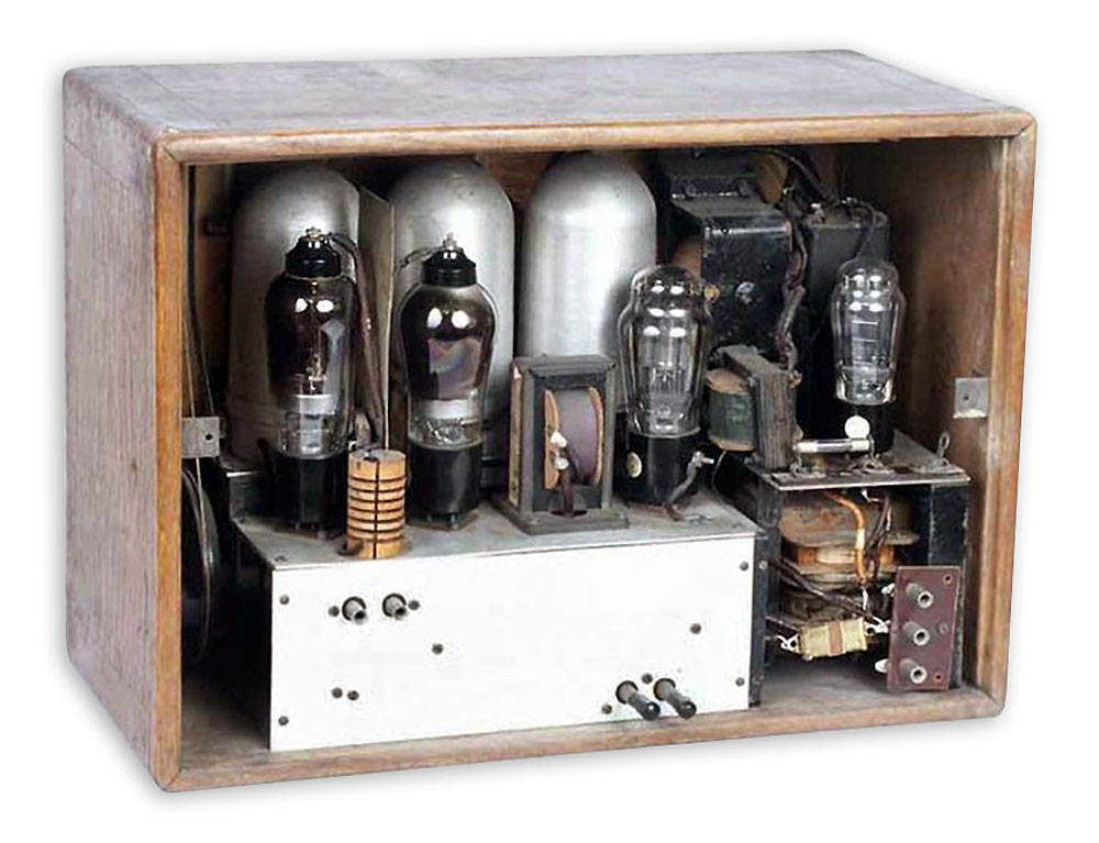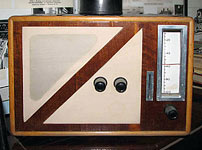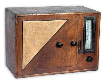 Оформлен приёмник в деревянном ящике где установлено металлическое штампованное