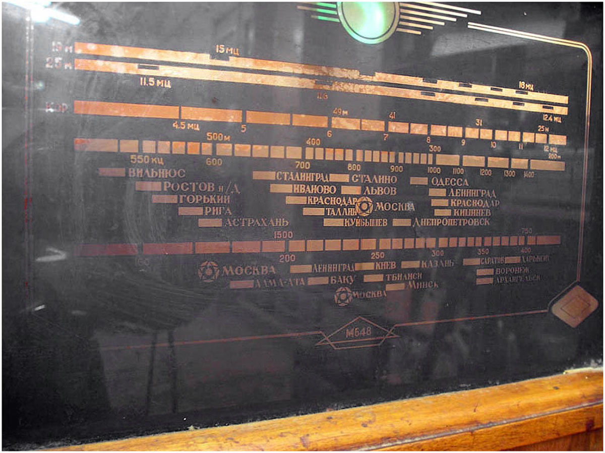 момент радиоприёмник, в нижнем правом углу шкалы имеется окошко за которым