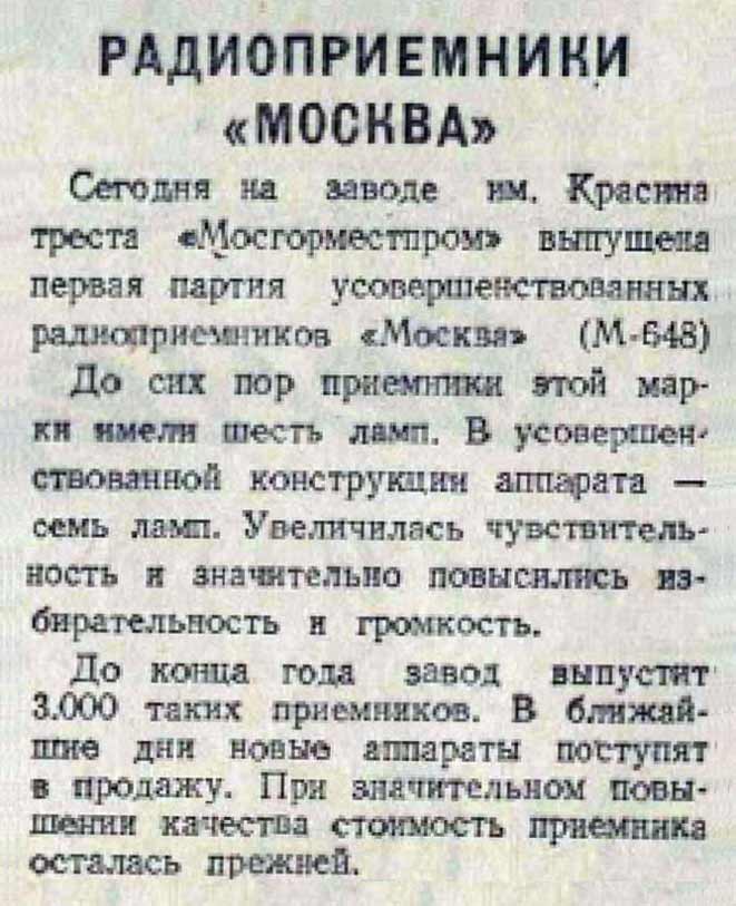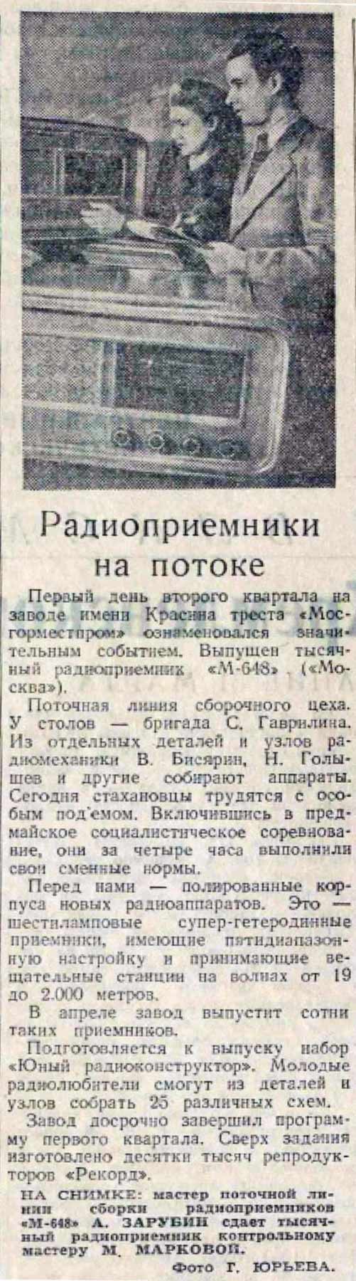 "М-648" с 1948 года выпускал Московский радиозавод имени Красина. Наименование