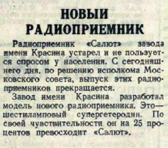 48 года, супергетеродин, питаемый от сети. С июля 1949 года приёмник