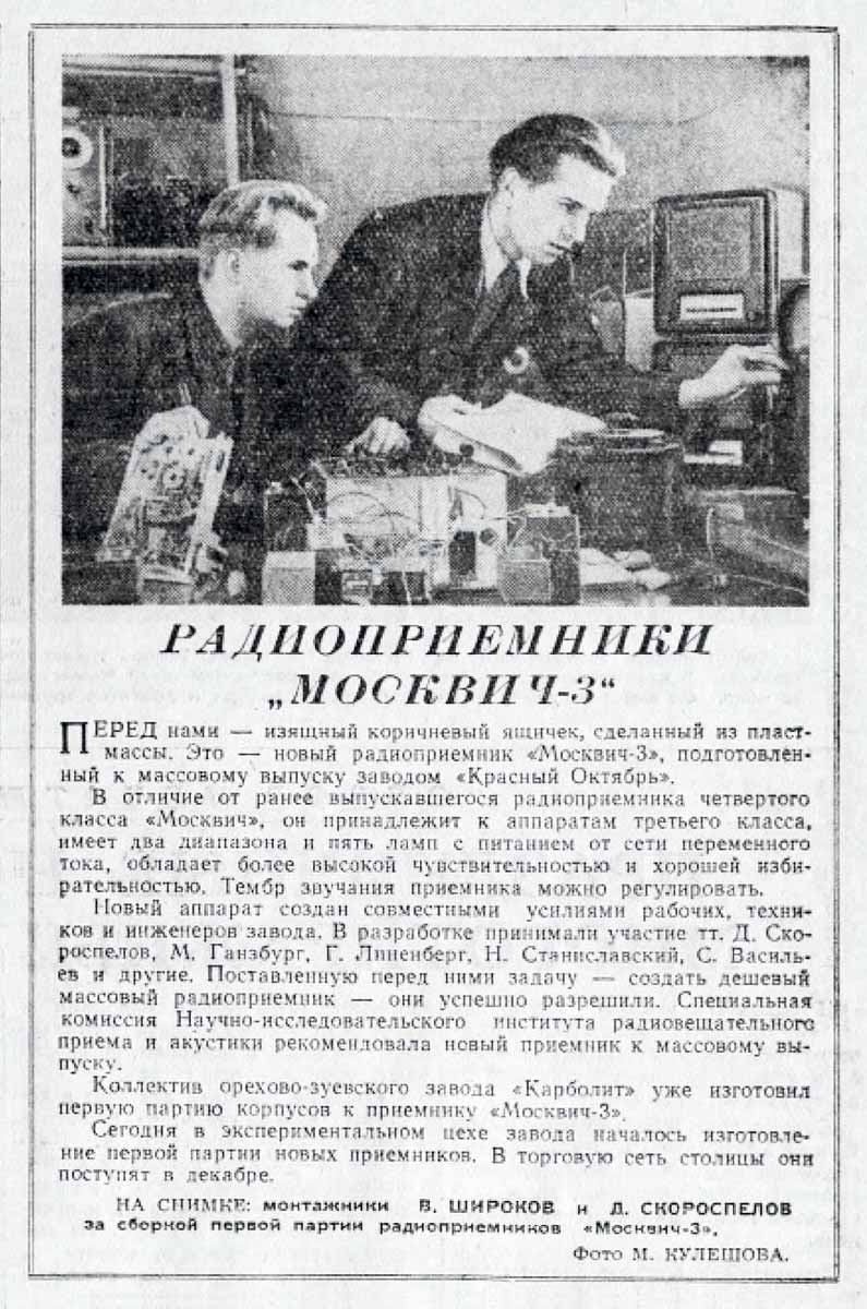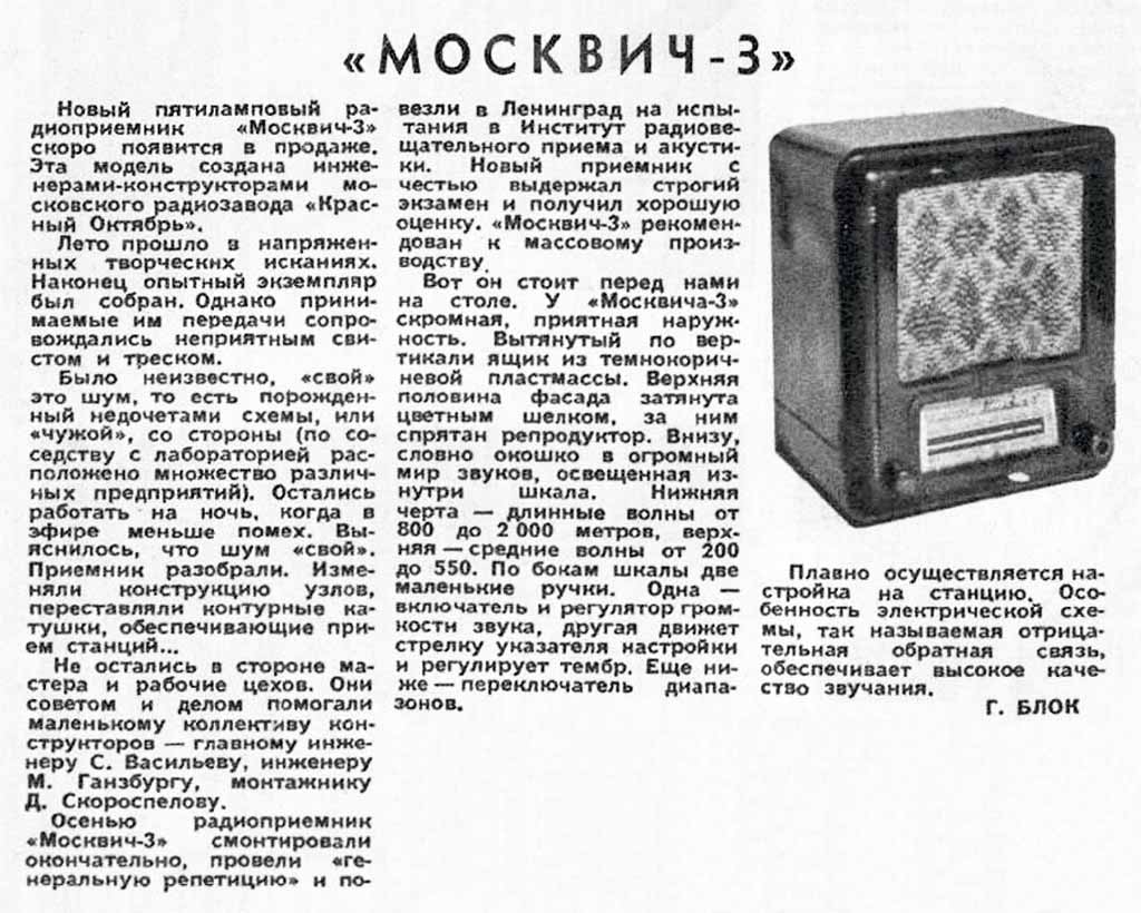 сетевой ламповый "Москвич-3" с декабря 1953 года выпускал Московский государственный