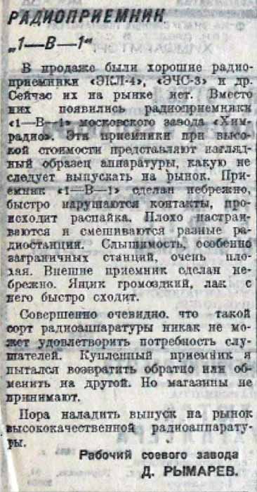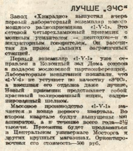 выпускался с 1934 года Московским заводом "Химрадио". Радиоприёмник модернизировался
