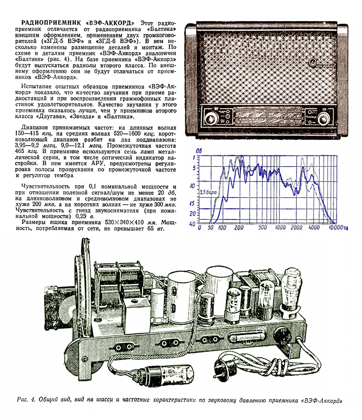 100...4000 Гц. Потребляемая мощность 65 Вт. Размеры приёмника 590х410х340