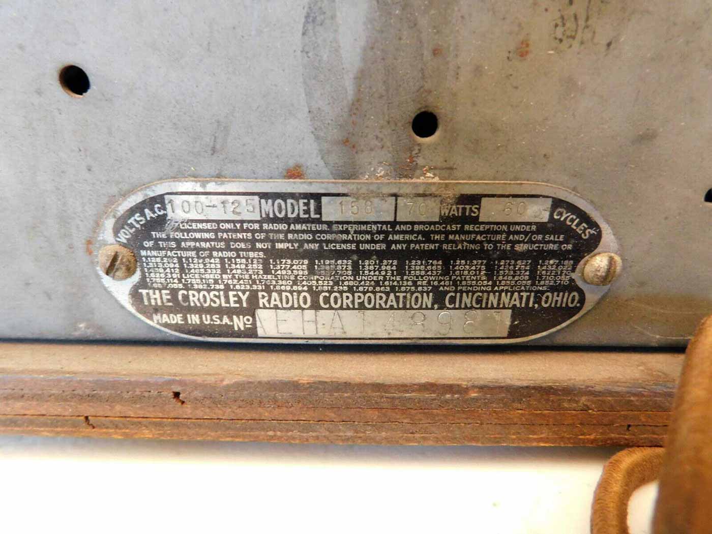 158" выпускался предположительно с 1932 года корпорацией "Crosley Radio",