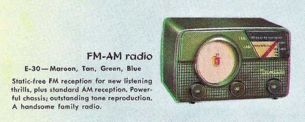 Радиоприёмник "Crosley E-30" выпускался с 1953 года корпорацией "Crosley". Супер на 7 лампах. АМ 540...1620 кГц, FM 88...108 МГц. ПЧ АМ 452 кГц. Питание - сеть постоянного или переменного тока 105...125 В.