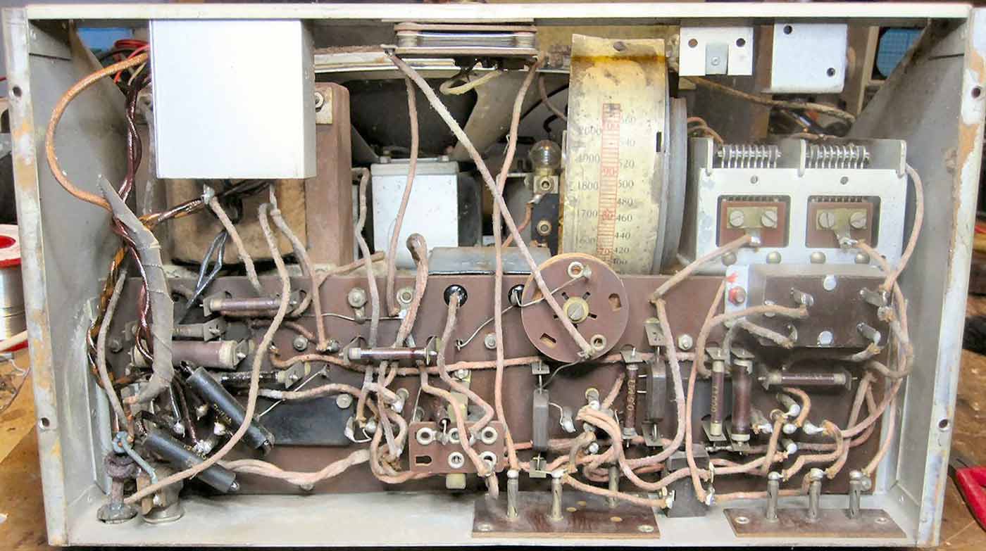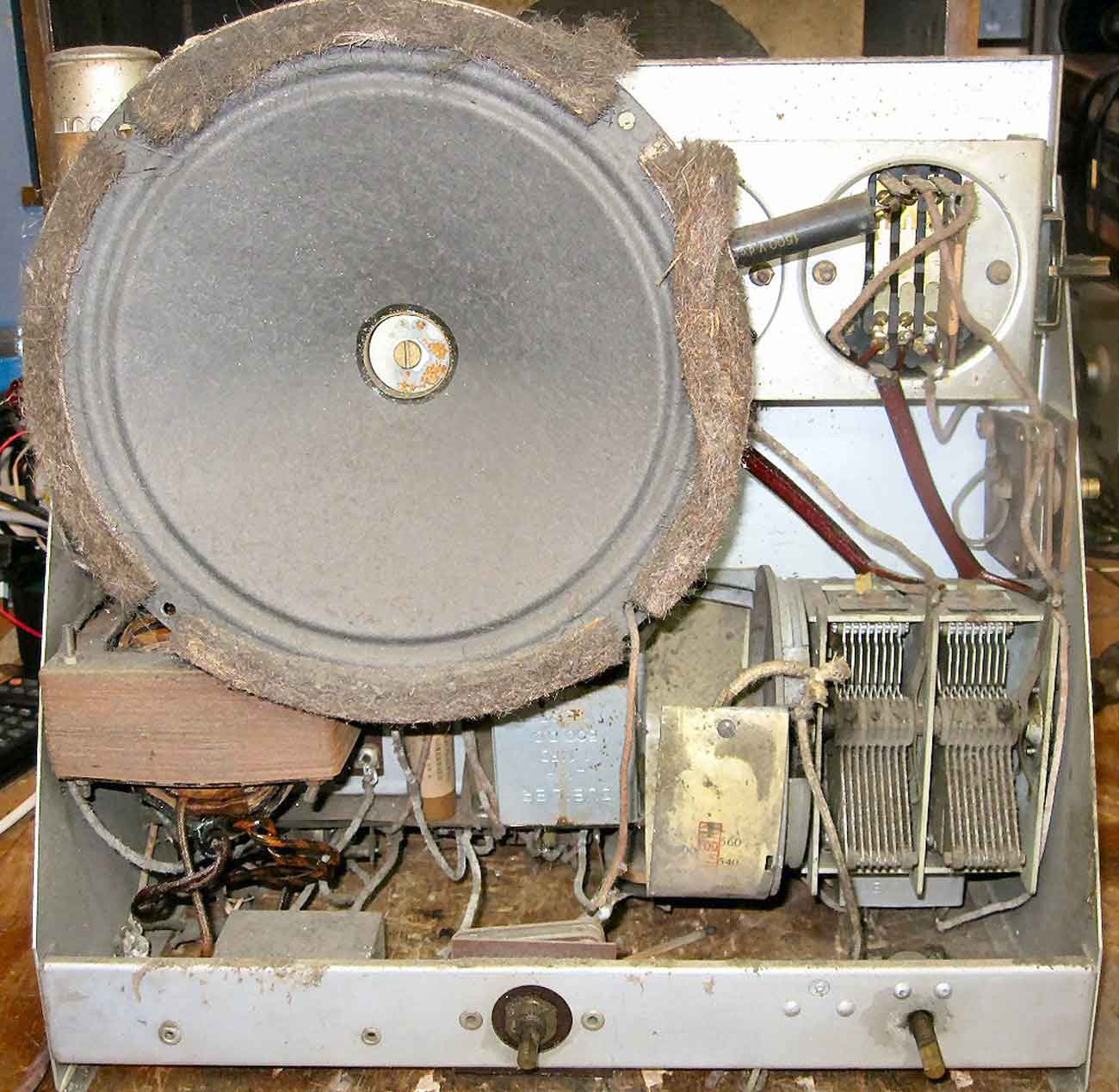 Радиоприёмник построен по регенеративной схеме на четырёх радиолампах,