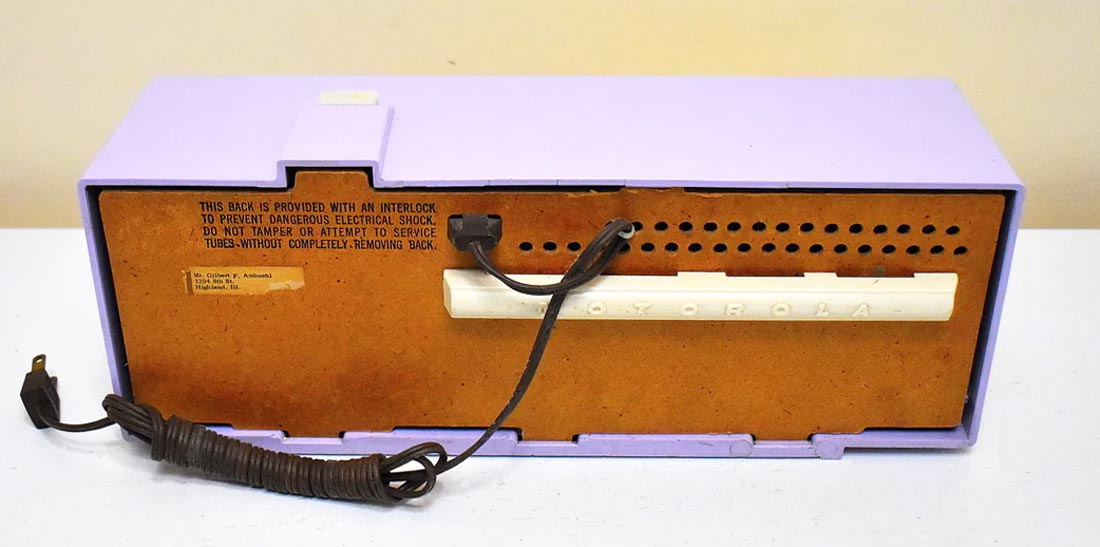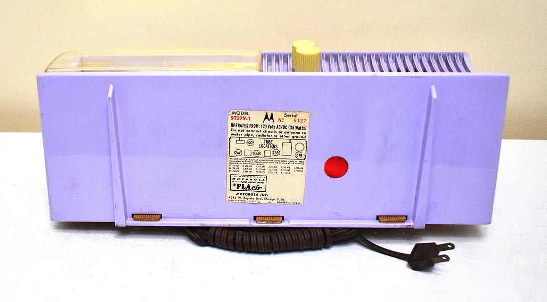 Сетевой ламповый радиоприёмник "Motorola 5T27V-1" с 1957 года выпускала компания "Motorola", США. Ламп 6. Диапазон СВ. ПЧ 452 кГц. Питание от сети переменного тока 120 В. Потребляемая мощность 15 Вт.