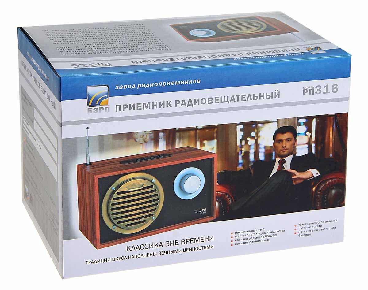 УКВ радиоприёмник "БЗРП РП-316" возможно с 2015 года выпускал НПП "Бердский завод радиоприёмников. Диапазон 64...108 МГц. Воспроизведение MP-3. Пульт ДУ. Видеосюжет.