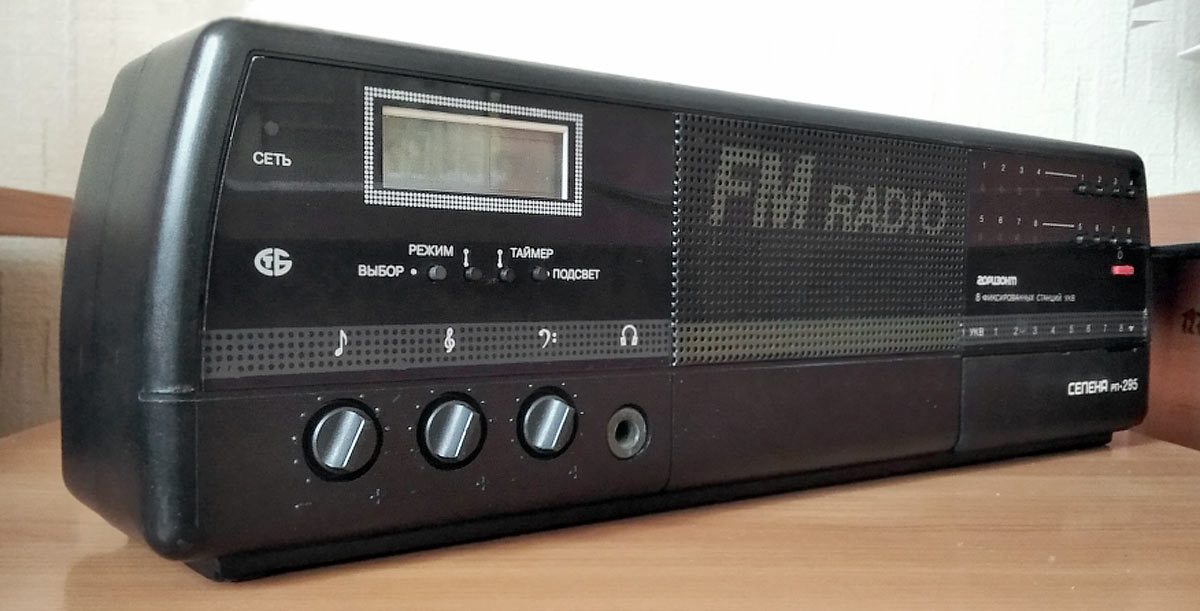 Сетевой стационарный радиоприёмник "Селена РП 295" выпускался возможно с 1994 года Минским ПО "Горизонт". Эфирная радиоточка УКВ-ЧМ диапазона 66...74 МГц. Фотографии модели Александра Олёх.