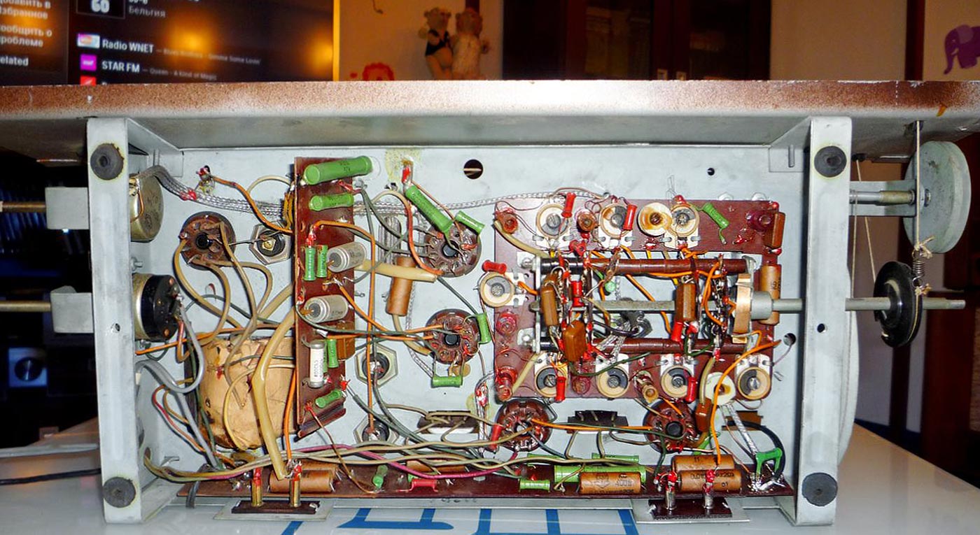 регуляторы тембра и громкости, справа настройки, переключатель диапазонов