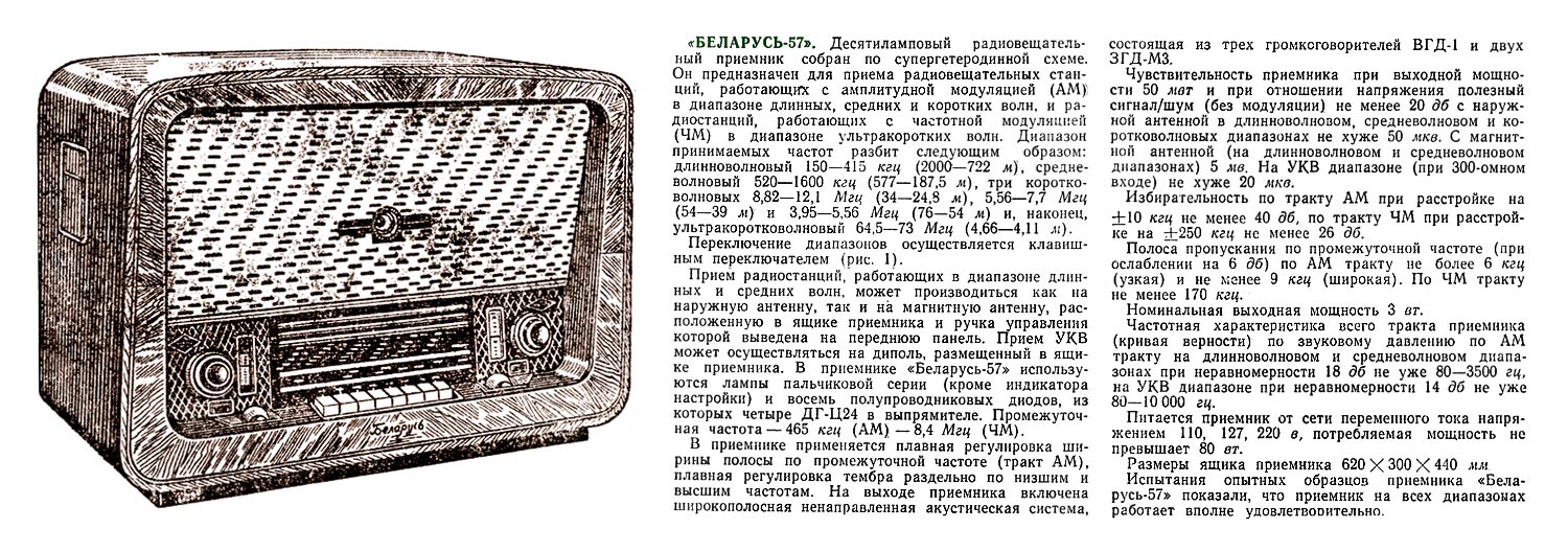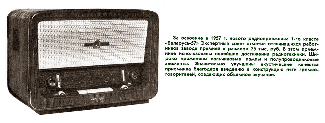 и радиола "Беларусь-57" с 1957 года выпускалась Минским радиозаводом. ''Беларусь-57''