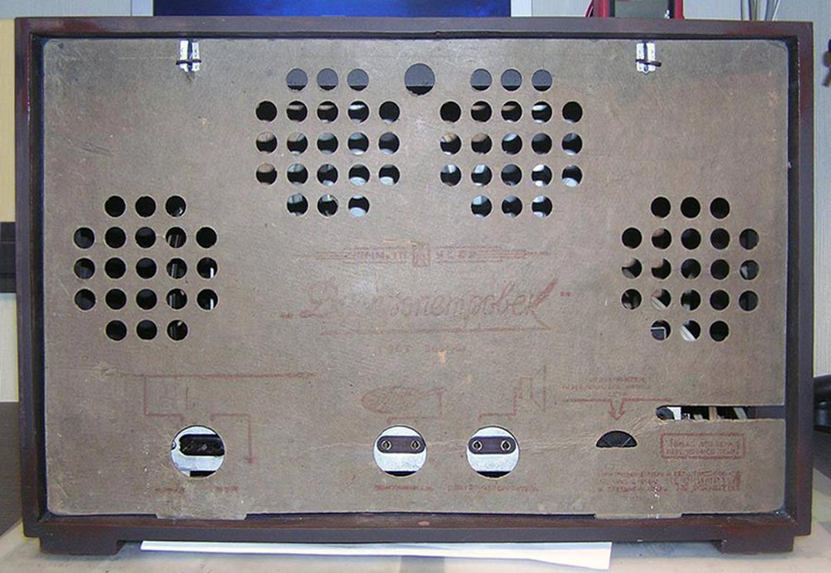 Корпус приёмника деревянный, фанерован под ценные породы. Размеры приёмника