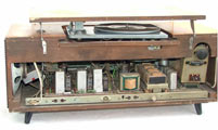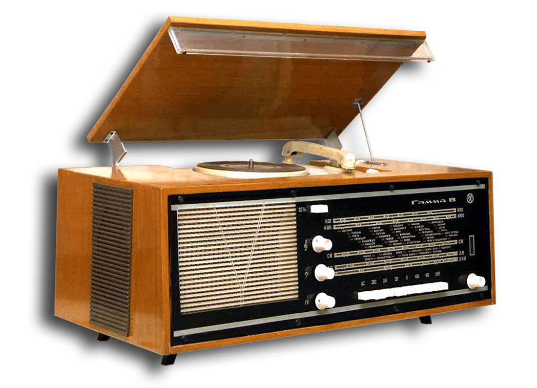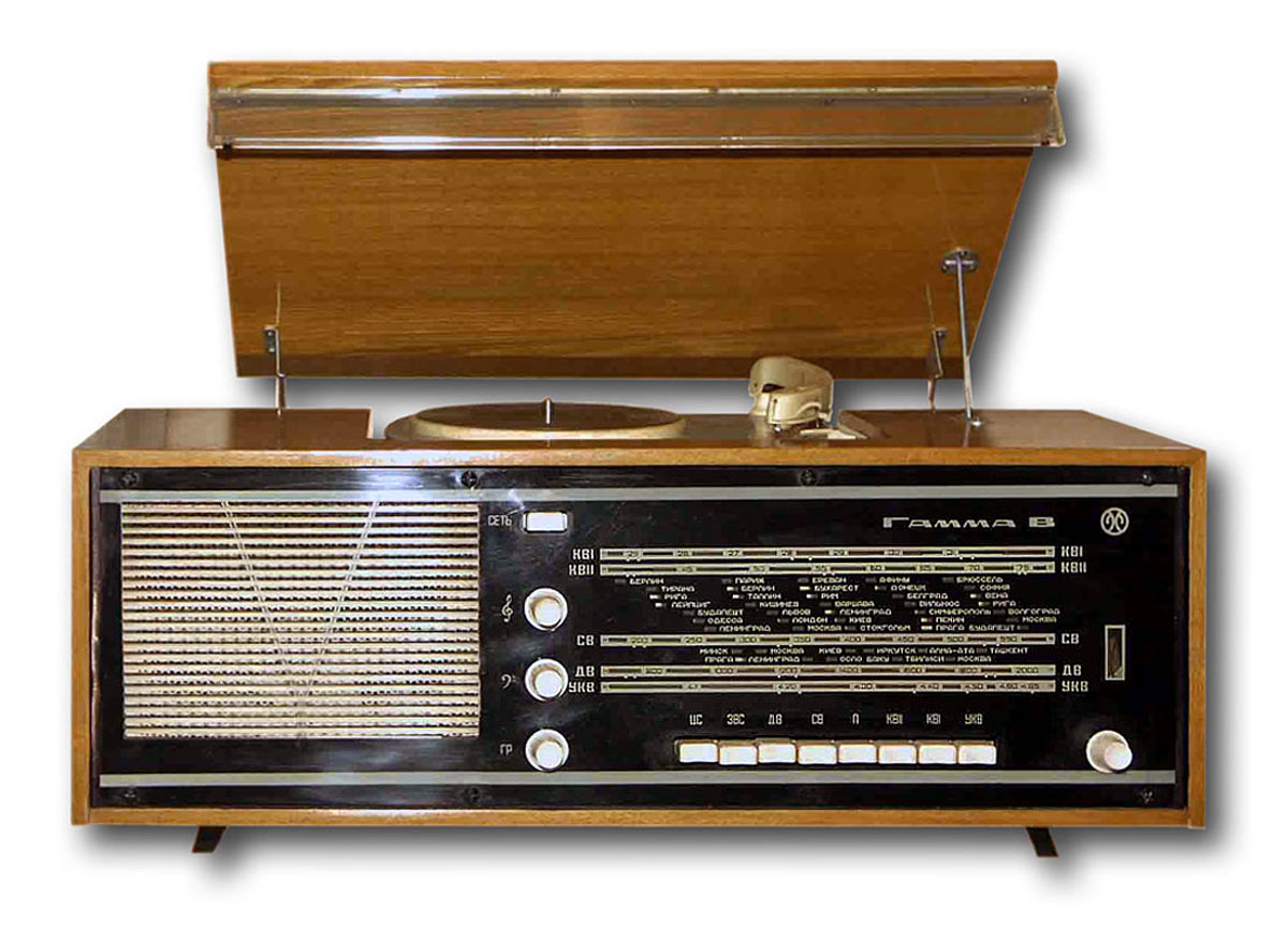 ДВ, СВ, KB, УКВ и воспроизведение грамзаписи. Радиола имеет приставку для