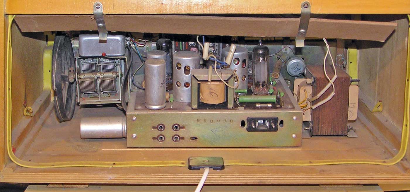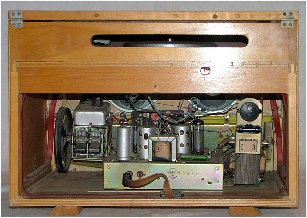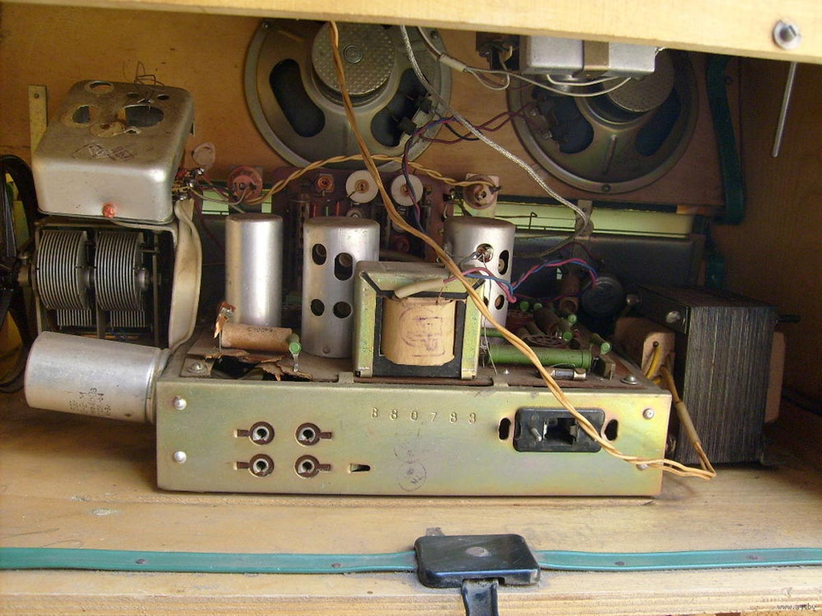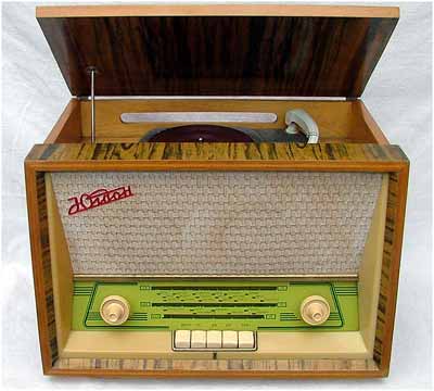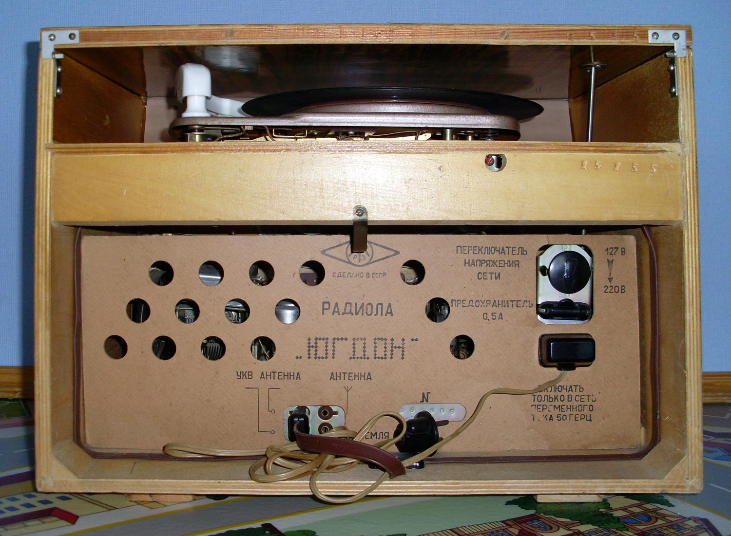 Радиола ''Югдон'' представляет собой пятиламповый радиоприёмник, объединённый