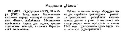 а массово радиола планировалась к выпуску с 1946 года. В газете "Правда"