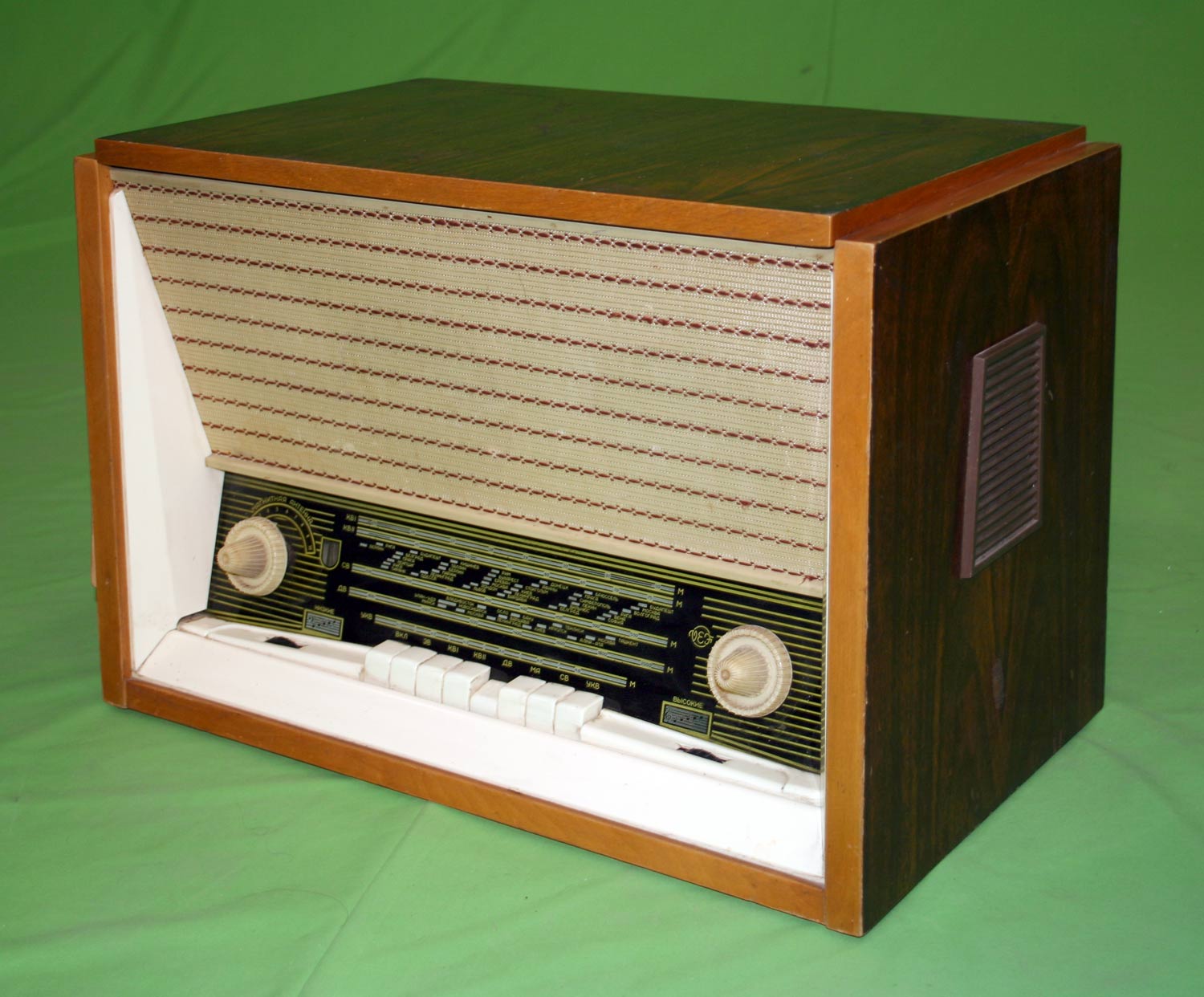 работе на приём. Габариты радиолы - 590х420х360 мм. Масса - 20,5 кг.