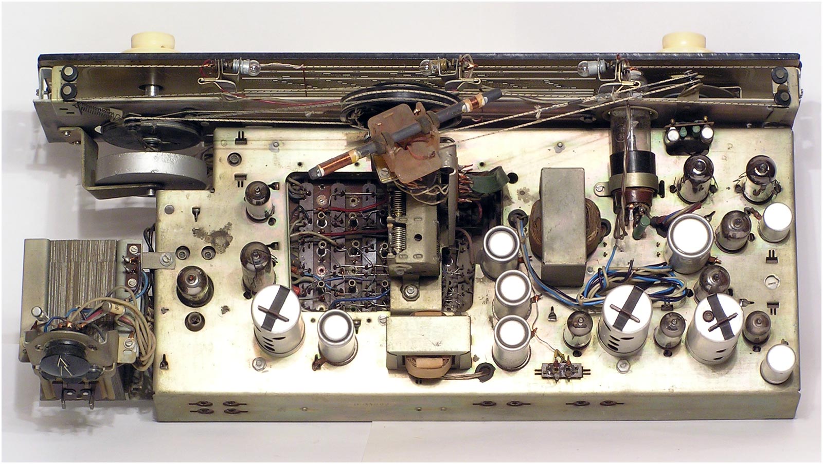 супергетеродинный АМ-ЧМ радиоприёмник, совмещённый с ЭПУ. В радиоле шесть