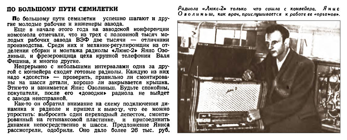 Е.А Левитина. Описание радиолы "Люкс-2" в журнале Радио