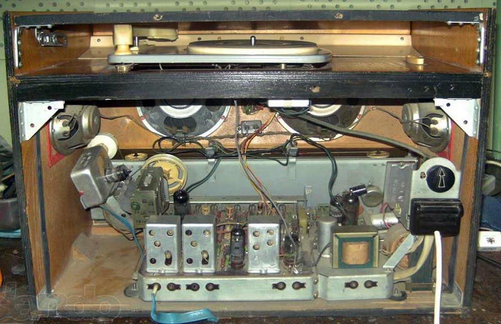 В. И. Ленина. Радиола представляет собой семиламповый приёмник, собранный