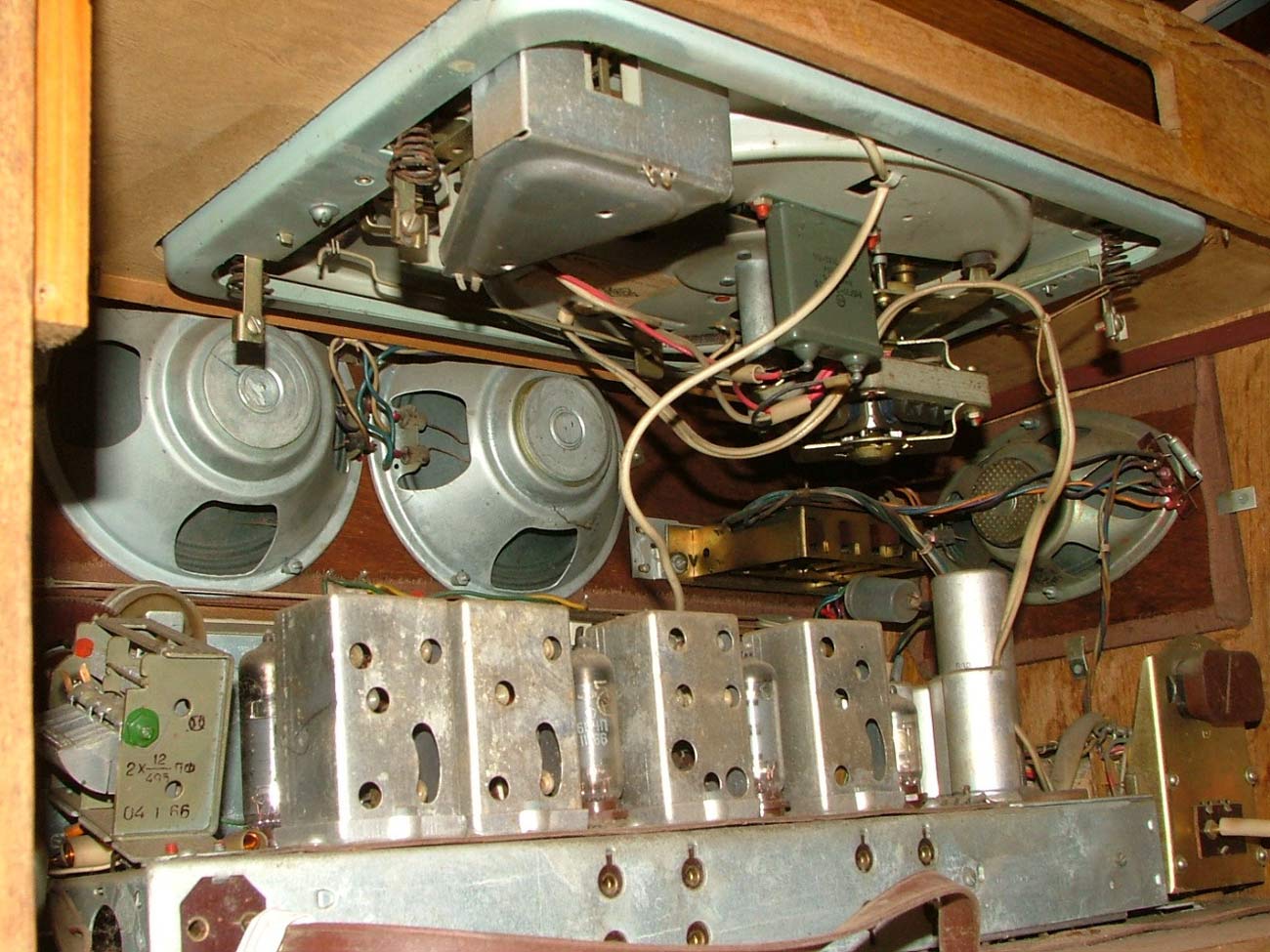 ЭПУ - 100 Вт. Габариты радиолы - 622х416х388 мм. Масса 23 кг.