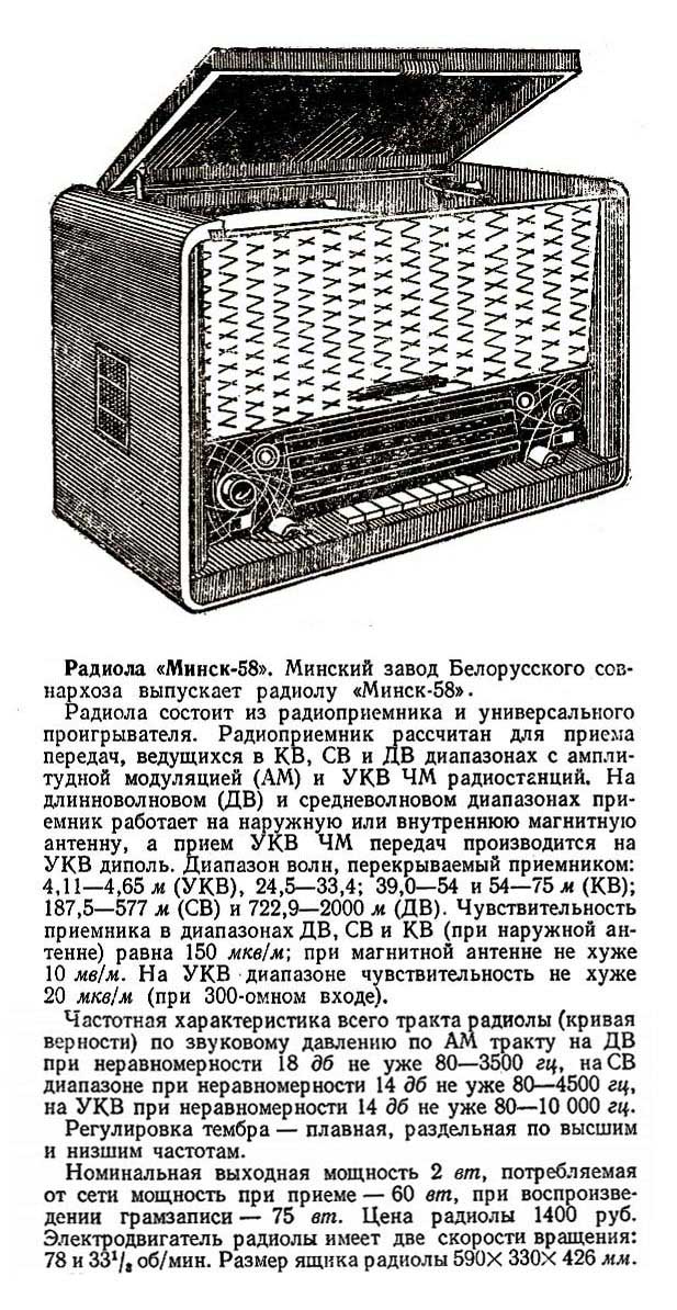 по эксплуатации радиолы "Минск-58". Описание радиолы "Минск-58" в справочнике