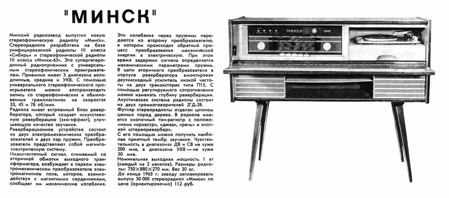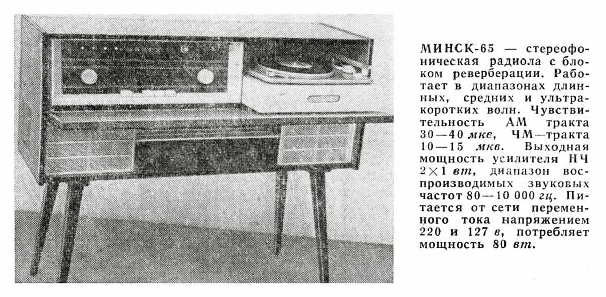 ("Минск-65") с 1965 года выпускалась Минским радиозаводом. ''Минск'' стереофоническая