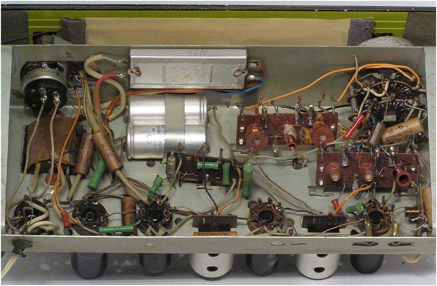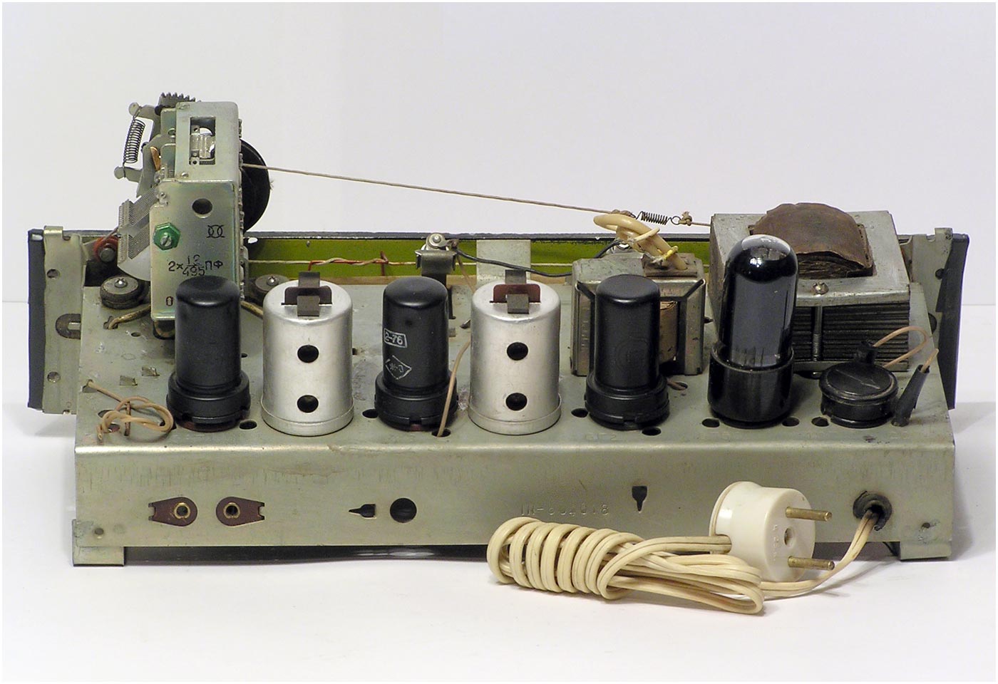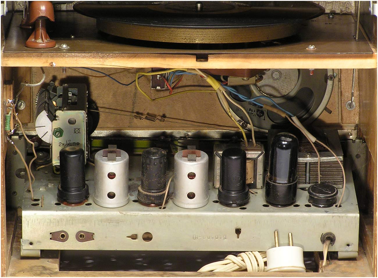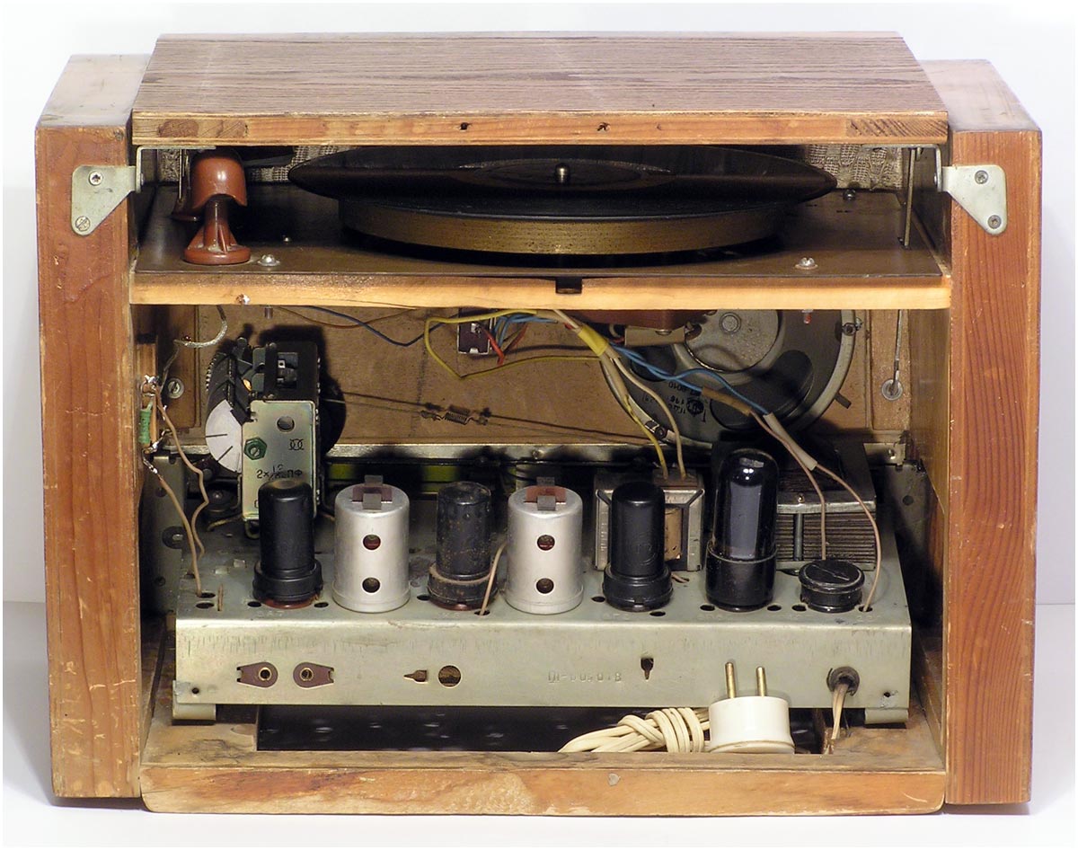 радиолы схожа с моделью ''Рекорд-52'', но кенотрон заменен столбиком АВС-80х260.