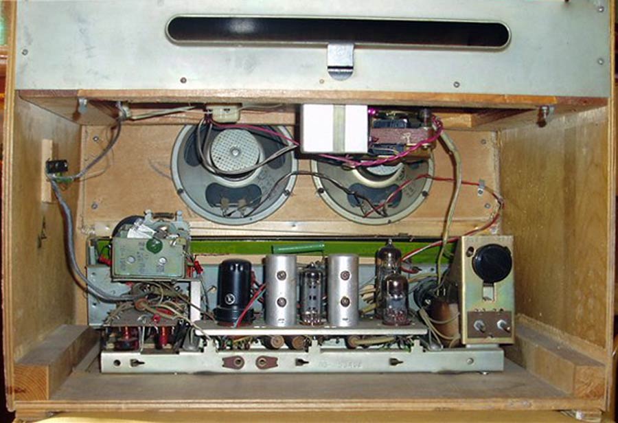 Весь монтаж радиолы выполнен навесным способом. В первых выпусках в преобразователе