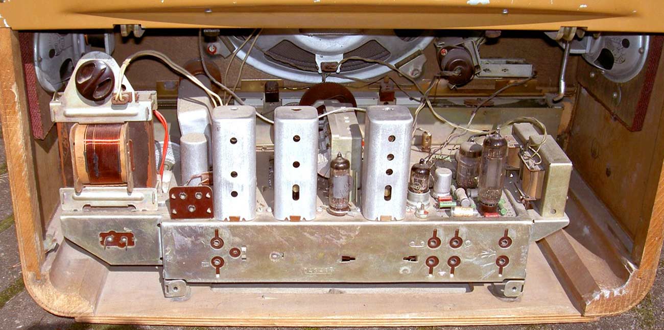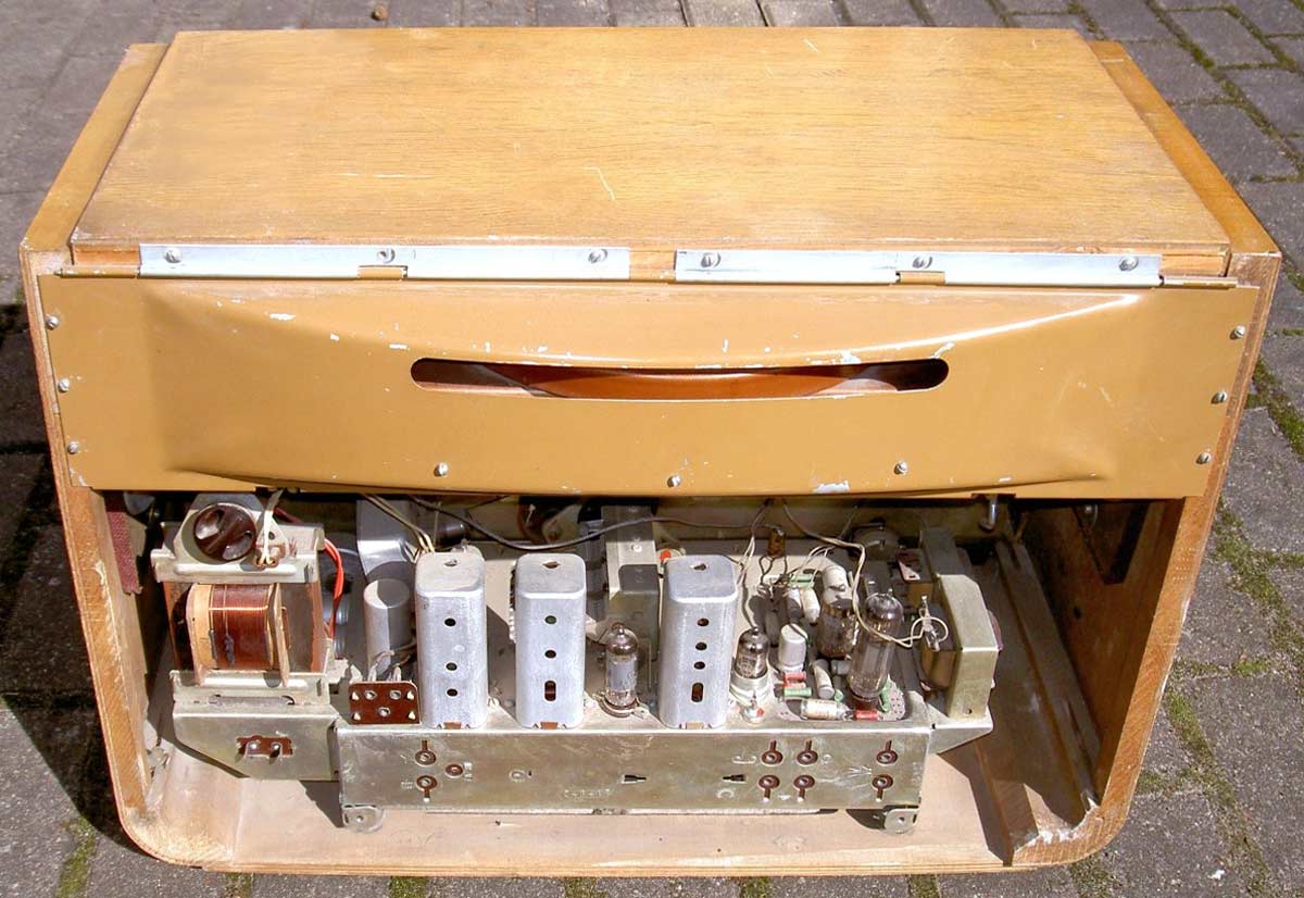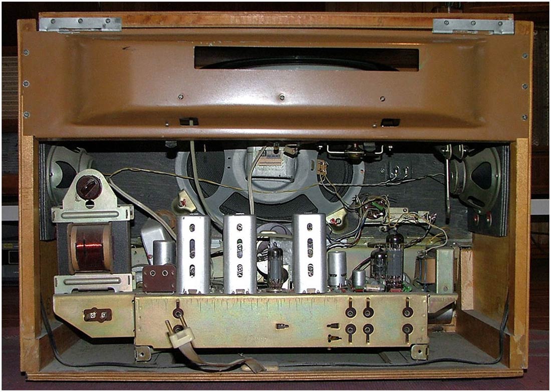 имени А.С.Попова. Радиола состоит из 7-ми лампового приёмника и трёхскоростного